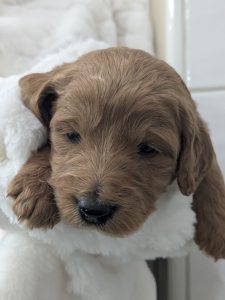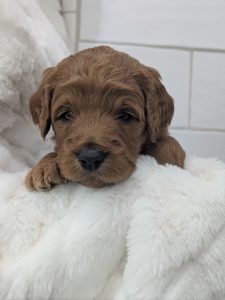 May and Cocoa had puppies! These sweet babies are CKC registered F1BB medium labradoodles. They are estimated to be around 30 lbs full grown and 18-20 inches to the shoulder. For us, this is the perfect-sized dog. Labradoodles are the absolute best family dogs, and the F1BB breeding means little shedding and more hypoallergenicity. We would love for you to come meet them today. They will be ready for their new homes mid-March.