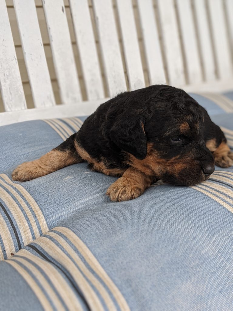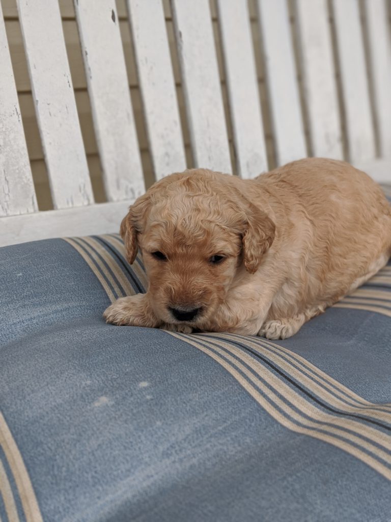 Mindy’s second litter is here! Each puppy has already been checked by our vet and pronounced very healthy! By the time they go home, they will be de-wormed, have their dew claws removed, be health checked, be current on their vaccines, and have their CKC paperwork. Based on the weights of the parents, I would estimate these dogs to grow up to be 60-80 lb. range. They are being raised in our home with our family, so they are loved on all the time and live in a clean environment. F1B doodles are the most likely of all American labradoodles to be low to non-shedding and allergy friendly. For more information, call Jennifer 615-427-3653. This page will stay updated for availability. Our Instagram feed @littlehouselabradoodles has more pictures, as well.
