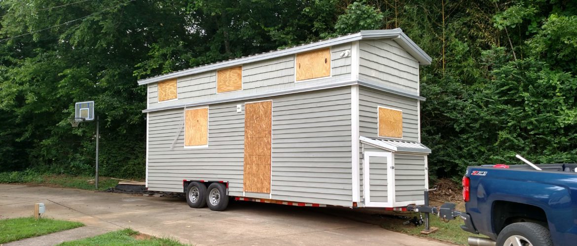 Problem #3: The second transport driver came to pick up the tiny house. As he was looking over the trailer, he noticed that there was not a lot of room between the tires and the edge of the fender wells. We had also noticed this and tried to grind down the edge so the tire would not rub it when going over bumps. The transport guy took it upon himself to try to grind it down further and then headed out on the road keeping a careful eye on the tire situation. He eventually pulled off close to Nashville and took it to a metal working shop that he knew about. They looked at the trailer frame and told him that the trailer’s springs are compressed completely down so that the trailer is resting on the frame. There is no cushion left, and because I had the trailer guy build the fenders as small as possible,the tires were actually rubbing a lot while in transit. The transport guy wound up turning back around, and the end of the story is that the tiny house is back at our house, and I had to kiss my deposit with the transport company goodbye. It turns out the tiny house was too heavy for the springs that we had, so if we want it to travel, we have to have heavier duty springs put on to raise the house higher.