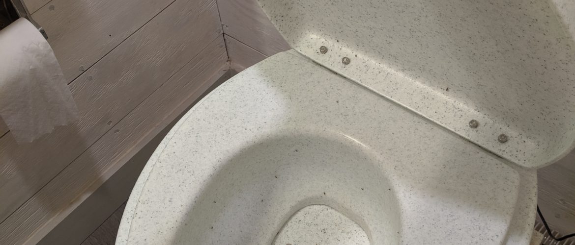 The second year the bugs were even worse. The video, in which you can see usage instructions clearly posted on the toilet, shows a little bit of how bad it got. Maybe because the weather stayed warmer longer, maybe because several guests did not read the instructions, but, for whatever reason, we had tons of bugs. The only way that I found to decrease their numbers was to dump the whole thing and start over. So we did a lot of dumping and starting over. Those little bugs were really stressing me out. As a host, I want my guests to have a wonderful, relaxing experience. I don’t want them to have any concerns. I told my husband, “I don’t care what we have to do, we have to have a regular toilet.”
